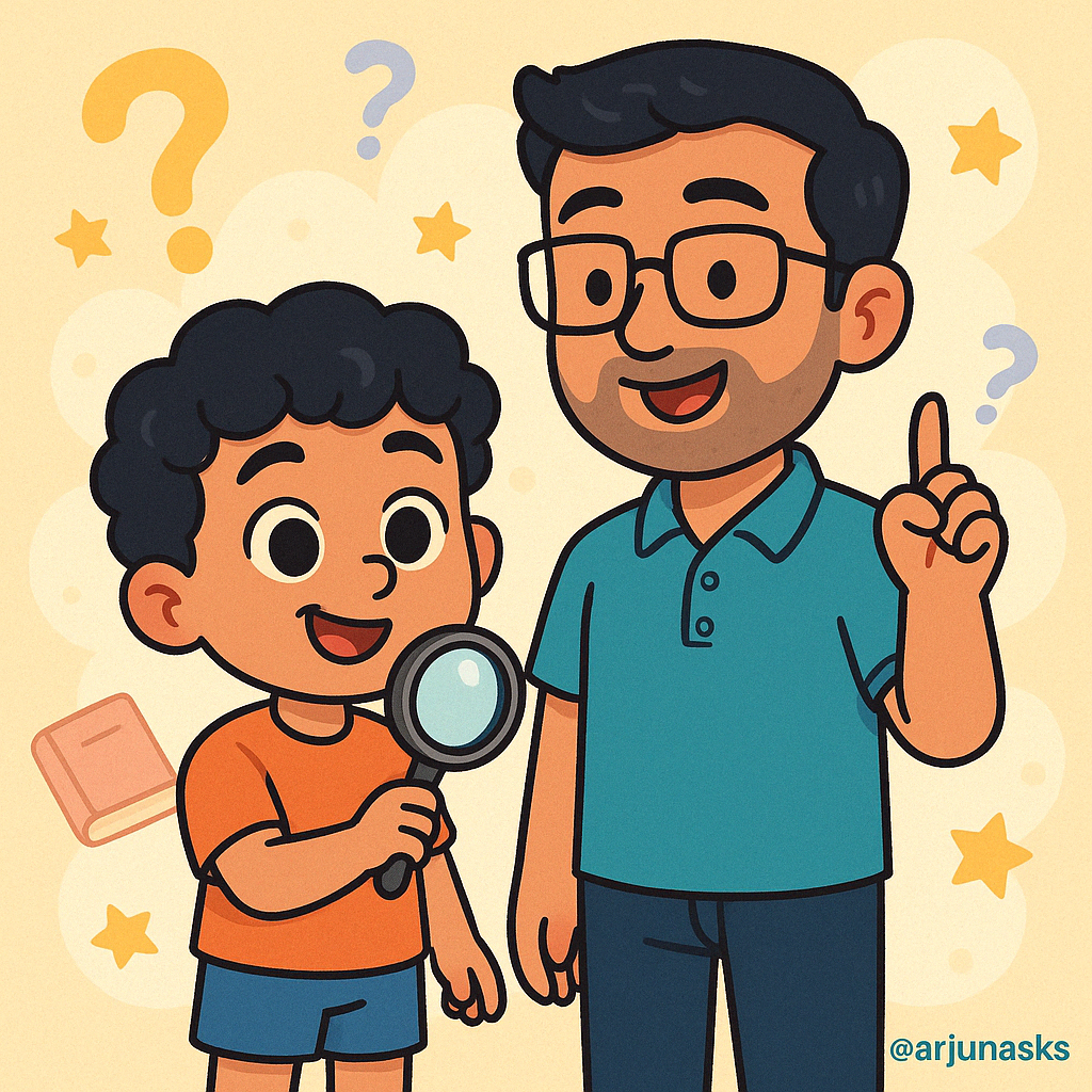 This is my happy place where I ask all my funny, silly, and curious questions to my Daddy! (His name is Goutham, but I call him Daddy!)We talk about cool stuff like —